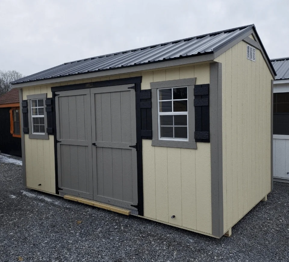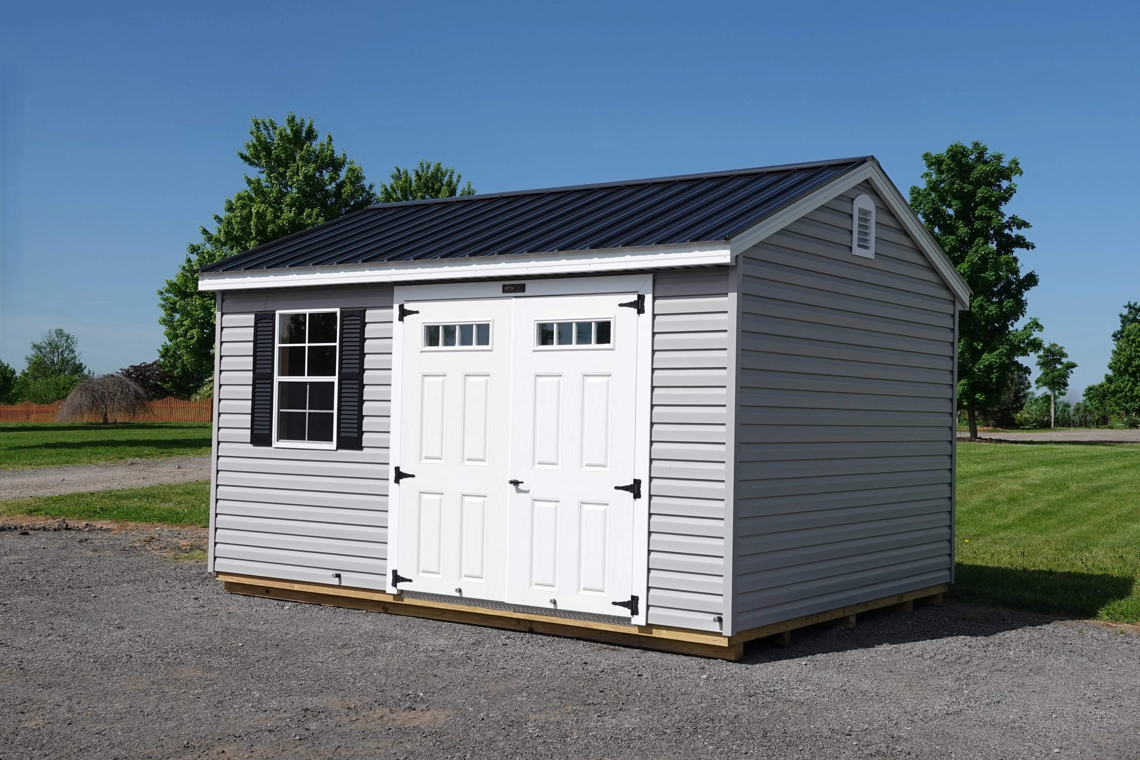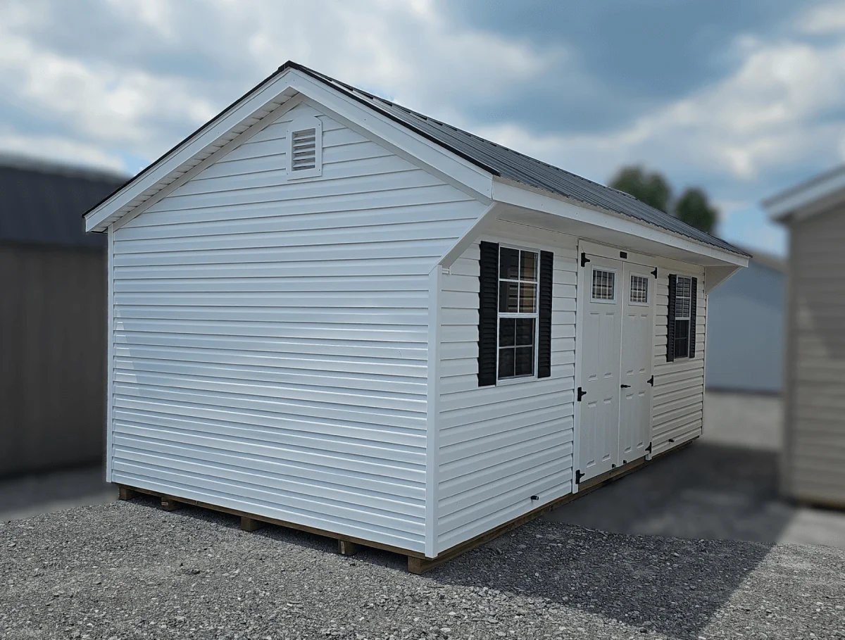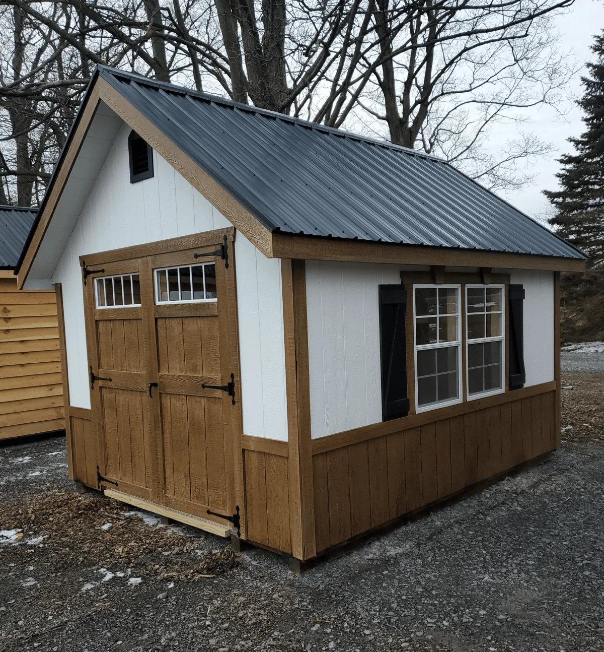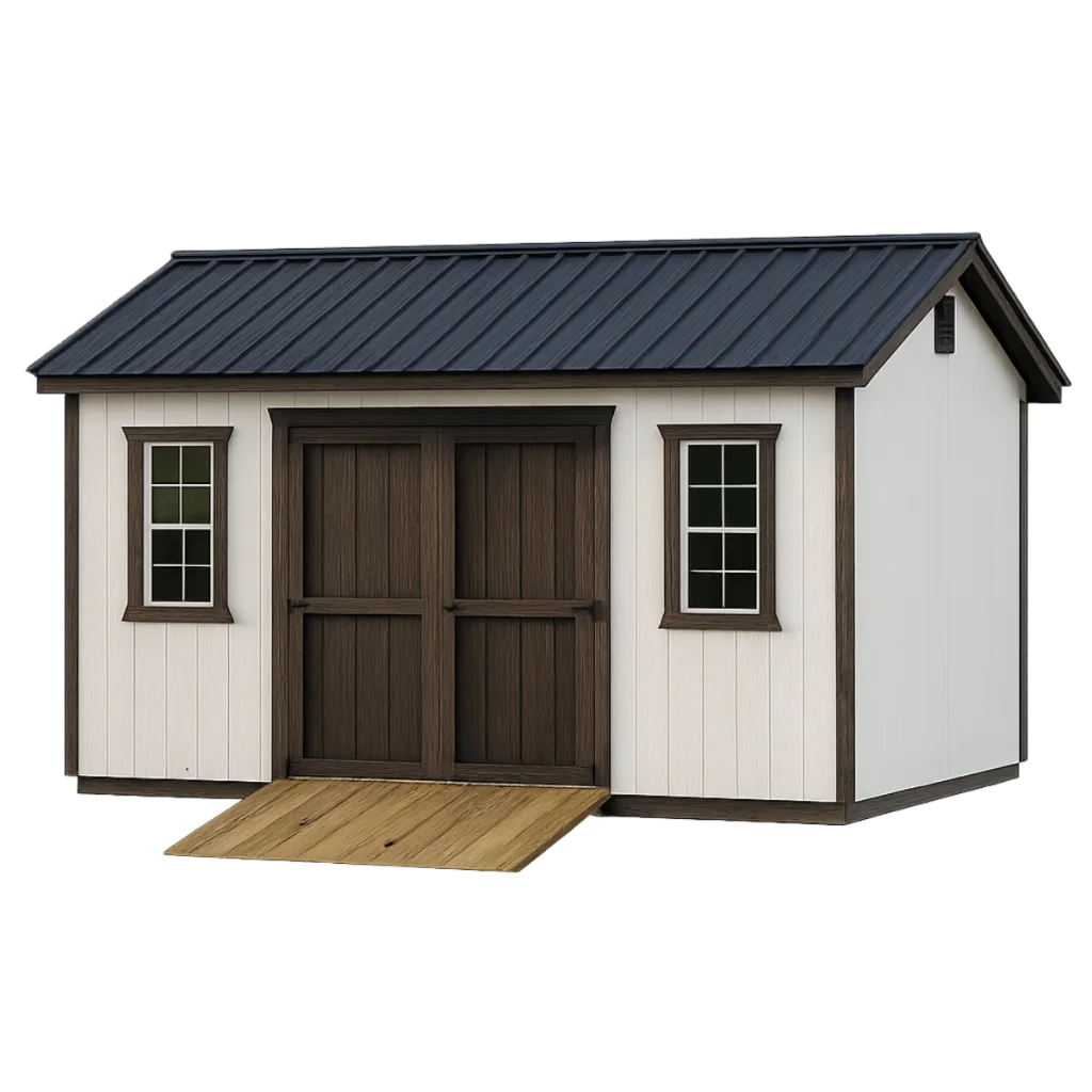 Great for extra storage, a workshop, or a stylish addition to your property. Customize with a porch, different window placements, colors and more!