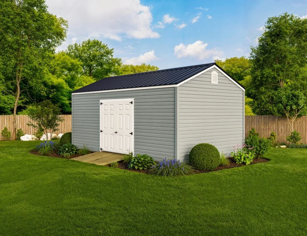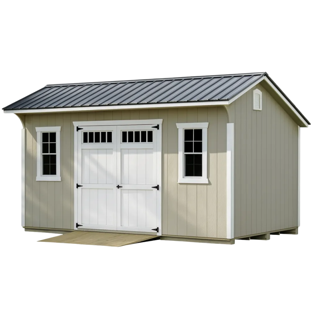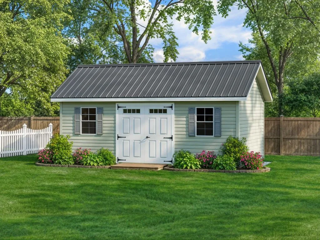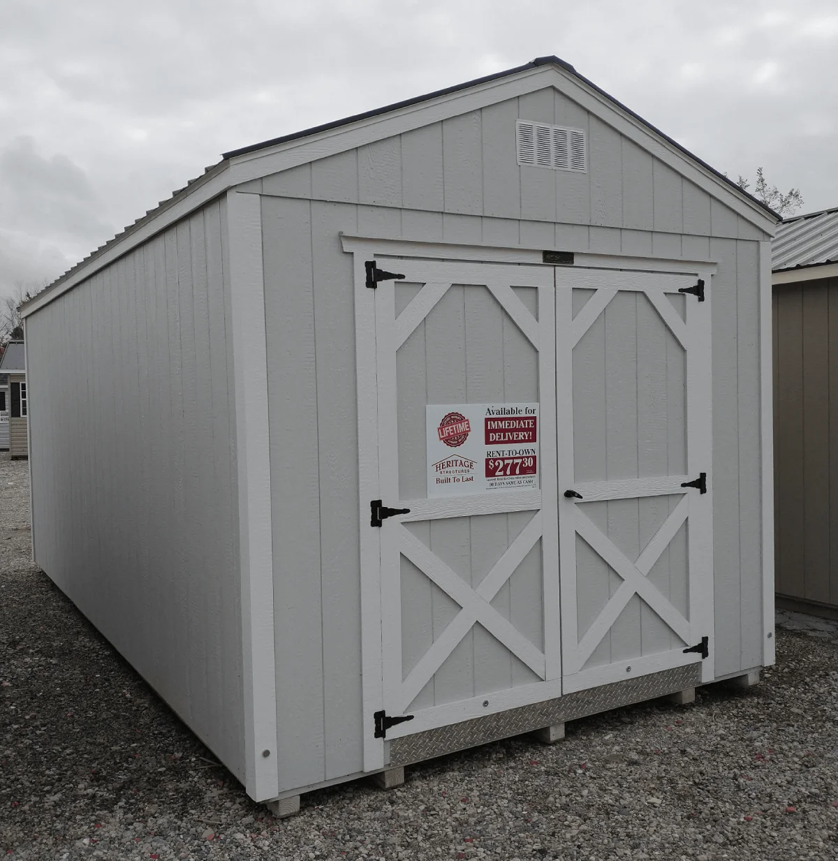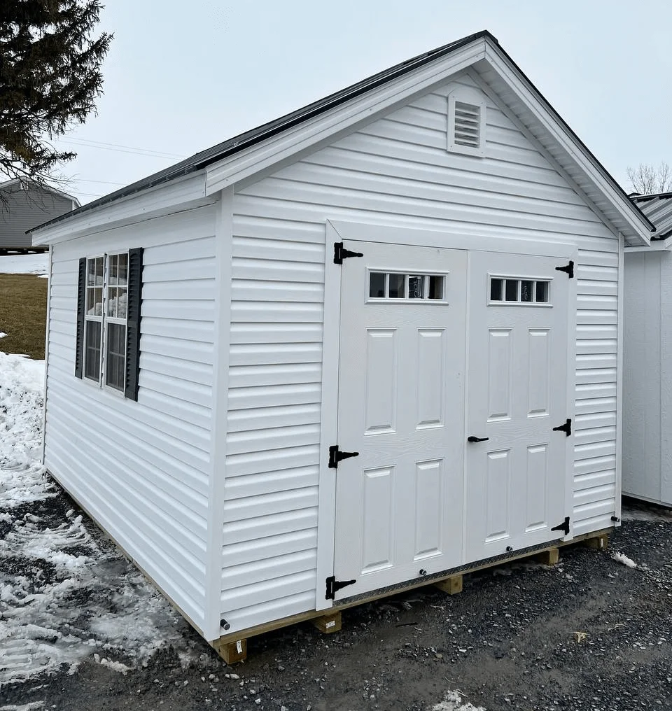 Great for extra storage, a workshop, or a stylish addition to your property. Customize with a porch, different window placements, colors and more!